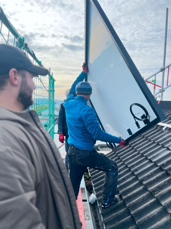 Sybille Kaschny: Ja, über die Plattform kam der direkte Kontakt zu den Handwerkern zustande. Die Handwerker haben sich sogar proaktiv auf Basis der Analyse gemeldet. Wir konnten uns dann für einen Handwerker entscheiden, mit dem wir super zufrieden waren. Die Kommunikation lief 1a. Der Solarteur war immer vor Ort, wenn die Handwerker und Monteure da waren und hat sich um all die Dinge gekümmert, die besorgt werden mussten. Uns wurde somit enorm viel Arbeit abgenommen. Wir wurden während des gesamten Projektes sehr gut aufgeklärt und alle haben super zusammengearbeitet und sich ausgetauscht. Ich kann die Plattform nur weiterempfehlen.