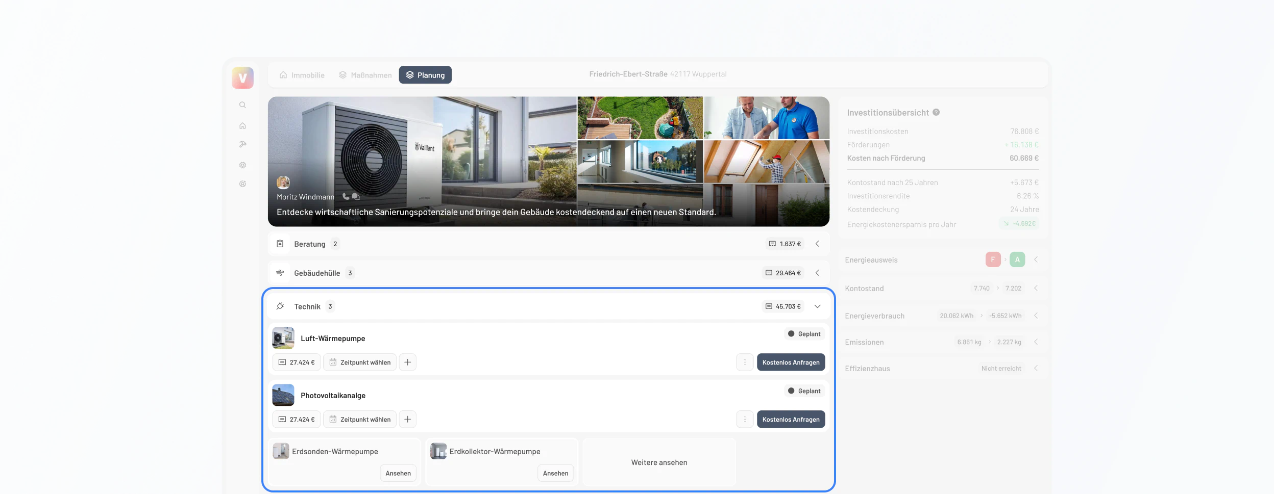 Maßnahmen lassen sich jetzt deutlich schneller erfassen, einfacher vergleichen und direkt in die Planung übernehmen. Deine Planung kann erweitert und anschließend unmittelbar an passende Dienstleister übergeben werden.